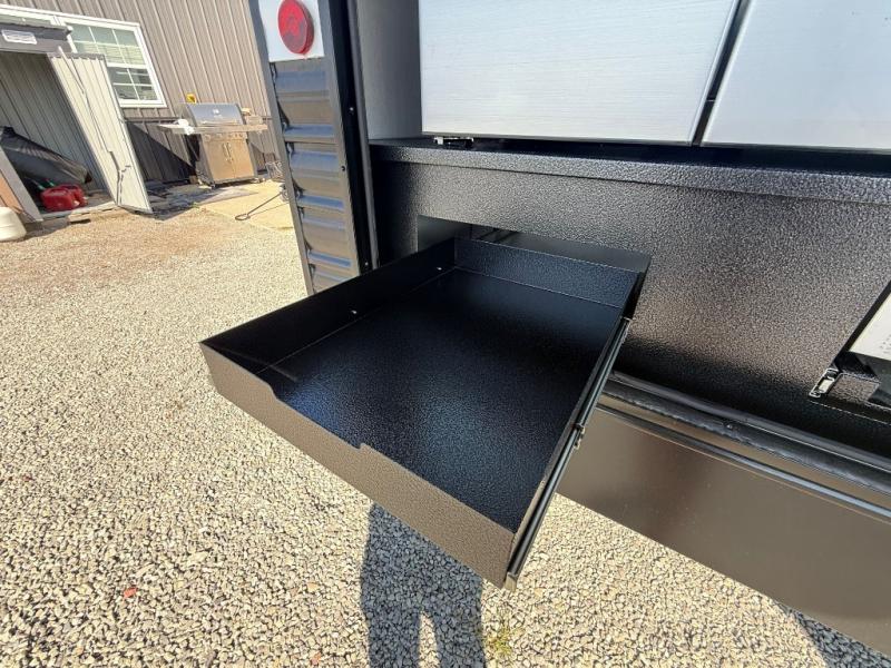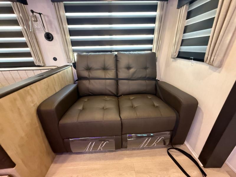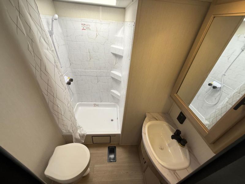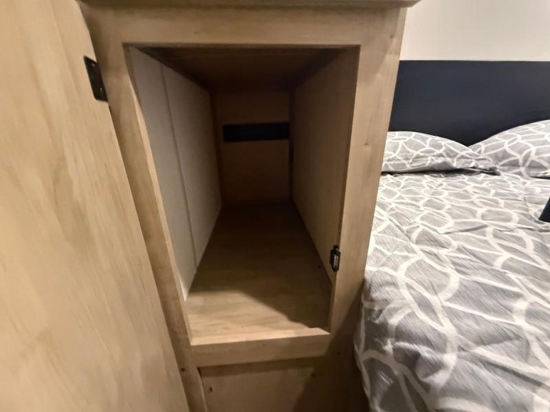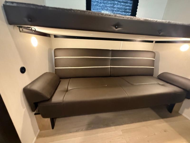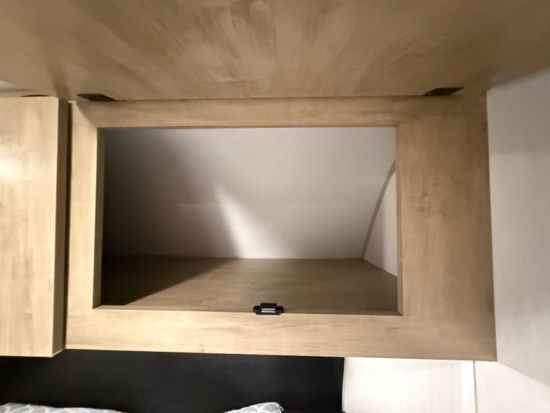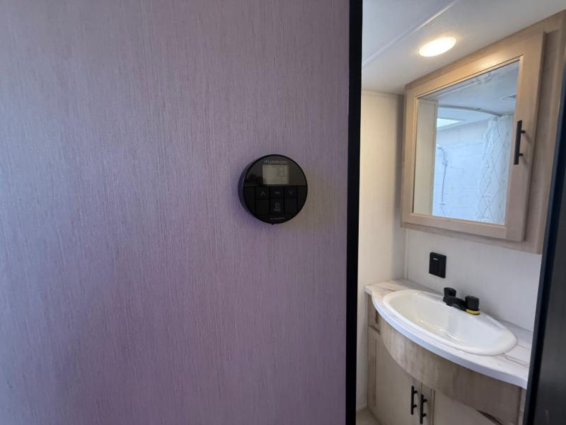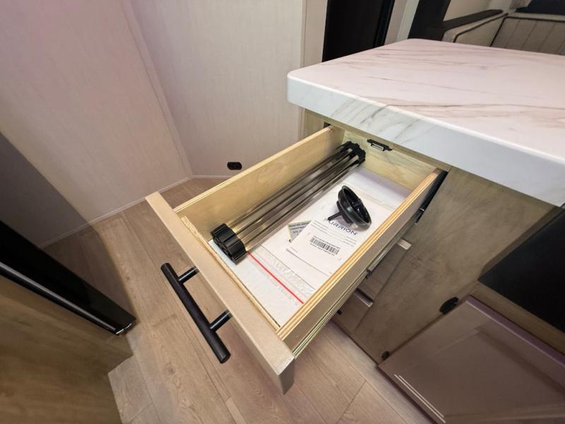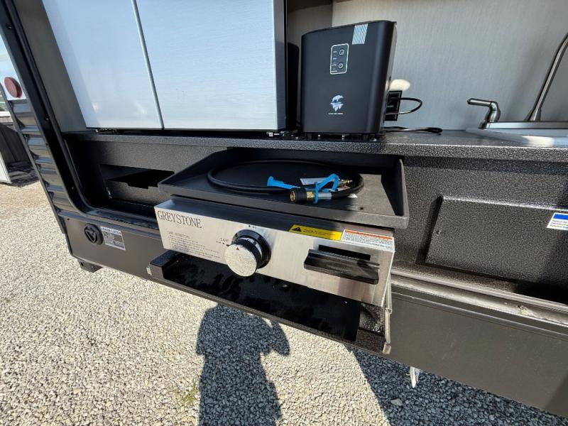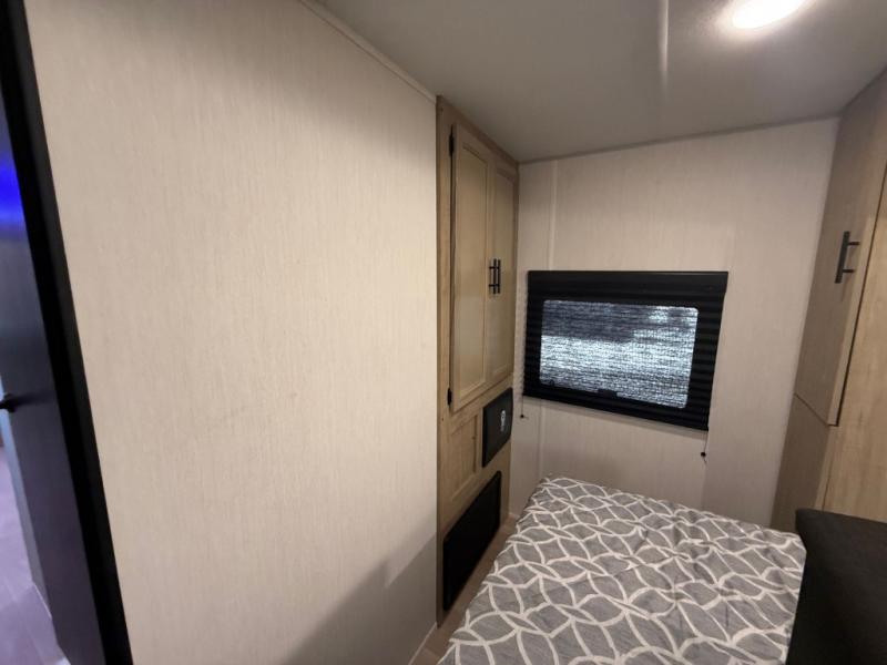 The whole gang will love this travel trailer with triple slides for more space. Your guests or the kids are sure to claim the rear private bunkhouse with a double bunk plus a flip-up bunk above a sofa and a TV mount if you want to add a television here. You'll have the front private bedroom with an RV king bed all to yourselves, and the full bath is close by for easy nighttime use. The middle combined kitchen and living area features dual opposing slides, a kitchen island, plus a U-shaped dinette and sofa. There is also an entertainment center with a fireplace and a hidden pantry behind for movies, snacks and more. Outside, two power awnings, exterior storage, and an outside kitchen makes it easier to spend more time outdoors!