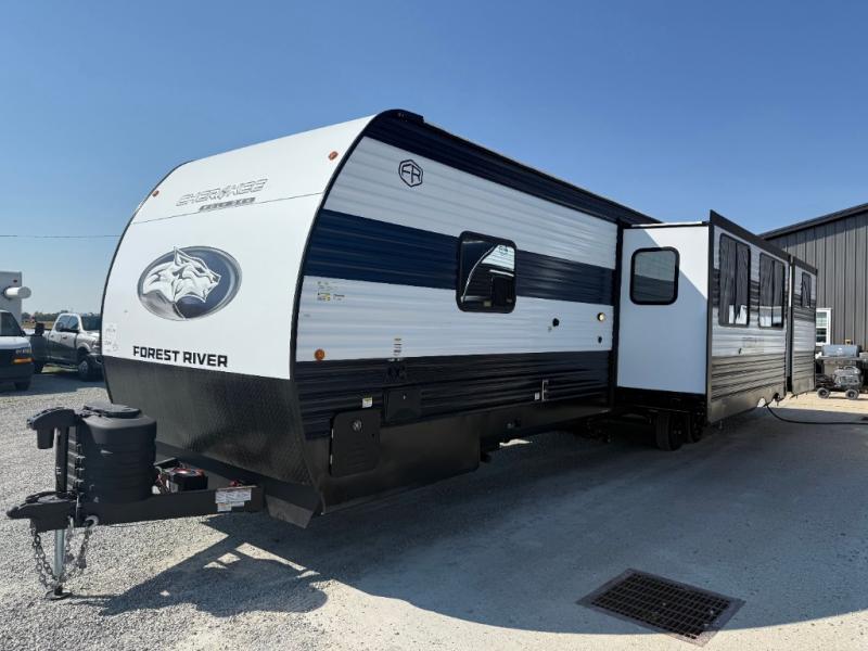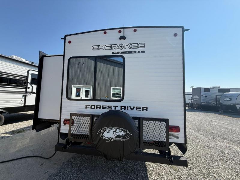 If the open road is calling your name, then answer it with one of these Forest River Cherokee Wolf Den travel trailers! You'll find better comfort, style and value in these trailers, giving you more freedom to enjoy the camping lifestyle. Like with all Forest River products, the Wolf Den features durable construction materials and convenient amenities, such as outdoor storage and battery disconnect. With at least one slide in each model, you'll enjoy open living spaces, along with full bath and kitchen amenities, and comfortable sleeping arrangements.