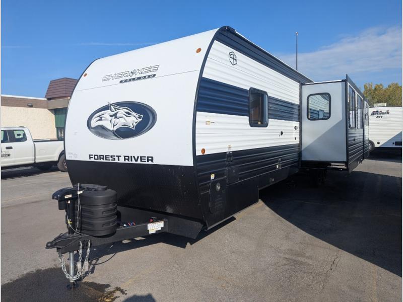 If the open road is calling your name, then answer it with one of these Forest River Cherokee Wolf Den travel trailers! You'll find better comfort, style and value in these trailers, giving you more freedom to enjoy the camping lifestyle. Like with all Forest River products, the Wolf Den features durable construction materials and convenient amenities, such as outdoor storage and battery disconnect. With at least one slide in each model, you'll enjoy open living spaces, along with full bath and kitchen amenities, and comfortable sleeping arrangements.