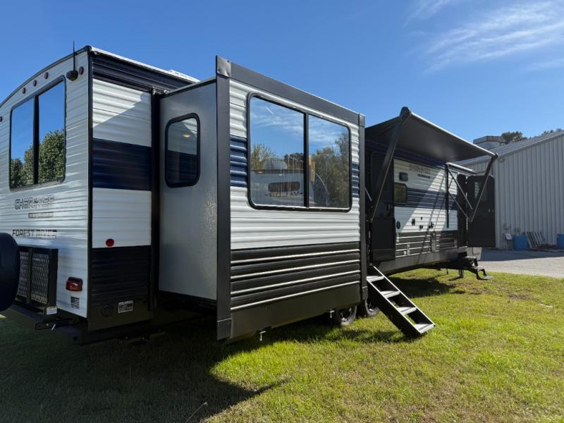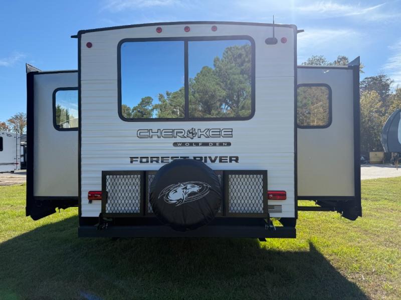 If the open road is calling your name, then answer it with one of these Forest River Cherokee Wolf Den travel trailers! You'll find better comfort, style and value in these trailers, giving you more freedom to enjoy the camping lifestyle. Like with all Forest River products, the Wolf Den features durable construction materials and convenient amenities, such as outdoor storage and battery disconnect. With at least one slide in each model, you'll enjoy open living spaces, along with full bath and kitchen amenities, and comfortable sleeping arrangements.