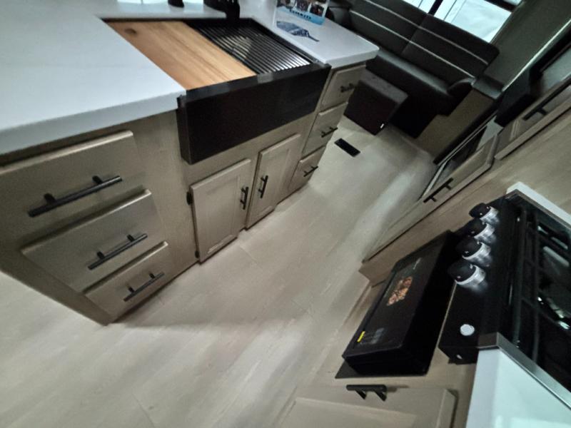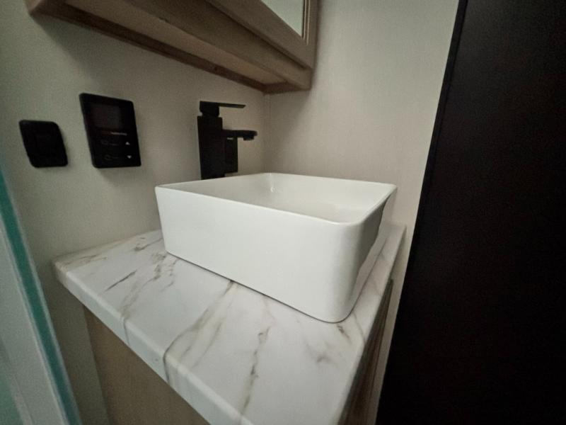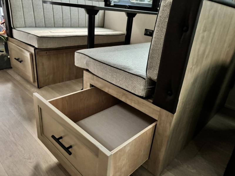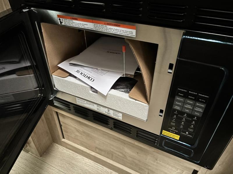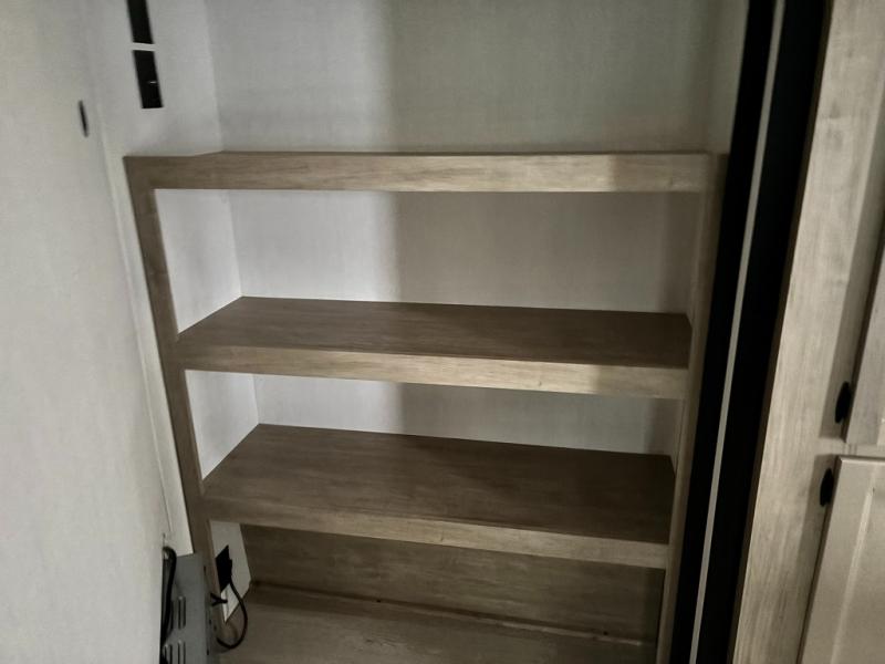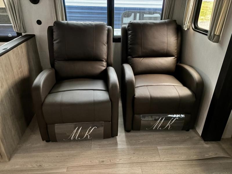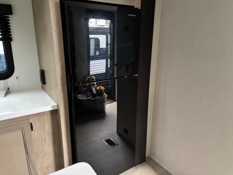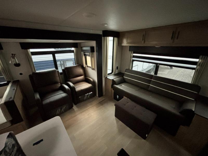 You'll love every minute spent in this double slide out travel trailer. You can relax on the rear sofa or dual lounge chairs, play a game at the booth dinette, and enjoy the glow of the fireplace. The chef of your group will appreciate the kitchen island, air fryer, plus refrigerator and pantry for food storage. A dual entry bath will create a front master bedroom, complete with an RV king bed and a bedside wardrobe to keep your space tidy.