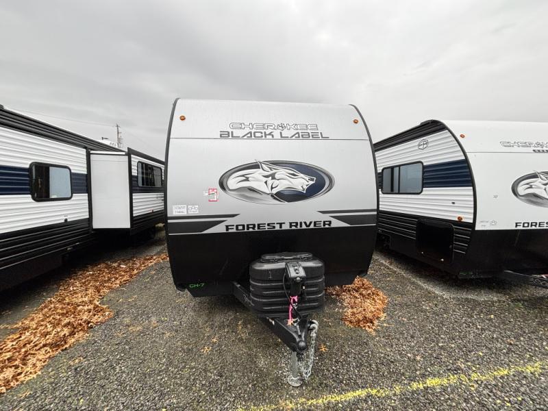 If the open road is calling your name, then answer it with one of these Forest River Cherokee Wolf Den Black Label travel trailers! You'll find better comfort, style and value in these trailers, giving you more freedom to enjoy the camping lifestyle. Like with all Forest River products, the Wolf Den Black Label features durable construction materials and convenient amenities, such as outdoor storage and battery disconnect. You will love the Black Label upgrade with its fiberglass gel coated sided walls, frameless windows, and thermo-foil arctic insulation. There are also designer cushion fabric, solid surface countertops and more comforts found throughout!