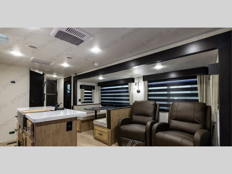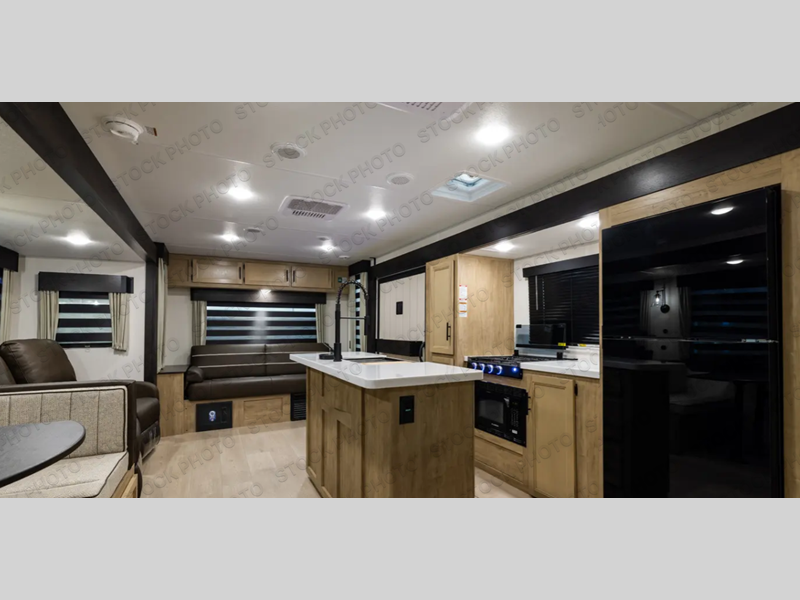 You'll love every minute spent in this double slide out travel trailer. You can relax on the rear sofa or dual lounge chairs, play a game at the booth dinette, and enjoy the glow of the fireplace. The chef of your group will appreciate the kitchen island, air fryer, plus refrigerator and pantry for food storage. A dual entry bath will create a front master bedroom, complete with an RV king bed and a bedside wardrobe to keep your space tidy.