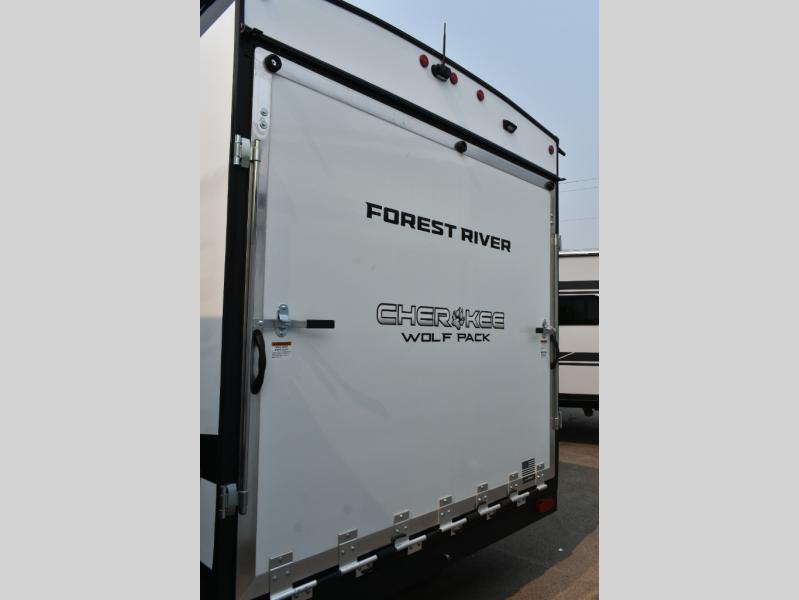 With any Cherokee Wolf Pack toy hauler by Forest River, you will enjoy never-ending adventures. You'll appreciate the 8' 6" wide body design so you can bring along toys and gear, and there is 4-camera prep with a rear camera if you want the option to make parking easier than ever. There is real wood cabinet doors and drawers inside and LED lights to keep your space well lit. These toy haulers are built with tongue and groove plywood main floors and a forced air heated underbelly and enclosed holding tanks that will help you extend your camping season.