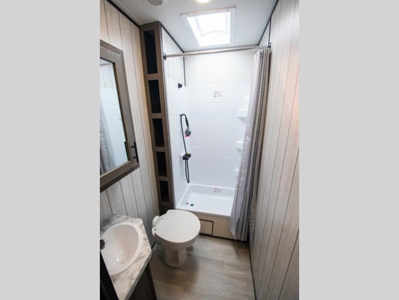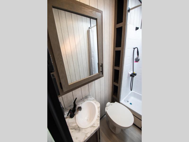 With any Cherokee Wolf Pack toy hauler by Forest River, you will enjoy never-ending adventures. You'll appreciate the 8' 6" wide body design so you can bring along toys and gear, and there is 4-camera prep with a rear camera if you want the option to make parking easier than ever. There is real wood cabinet doors and drawers inside and LED lights to keep your space well lit. These toy haulers are built with tongue and groove plywood main floors and a forced air heated underbelly and enclosed holding tanks that will help you extend your camping season.