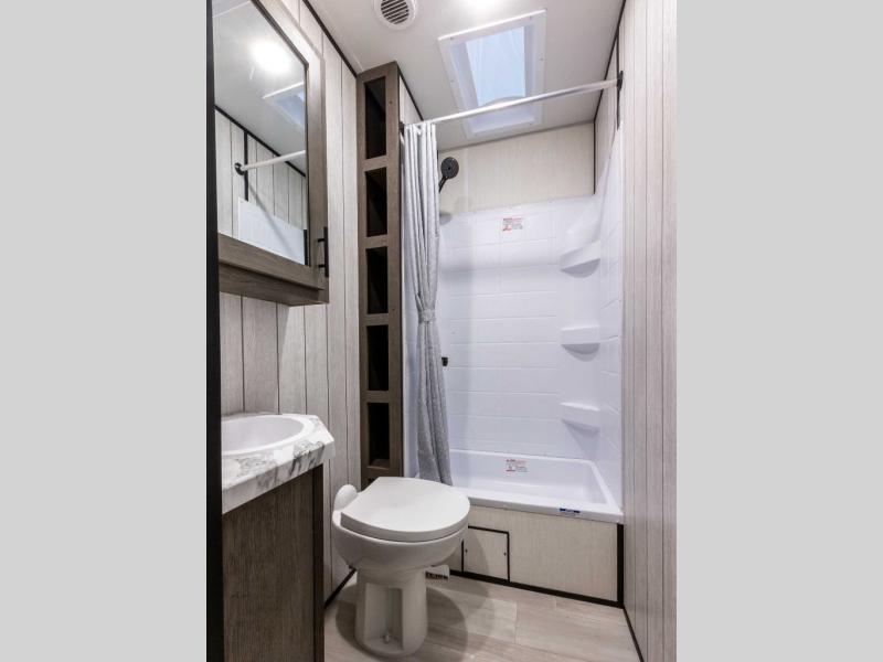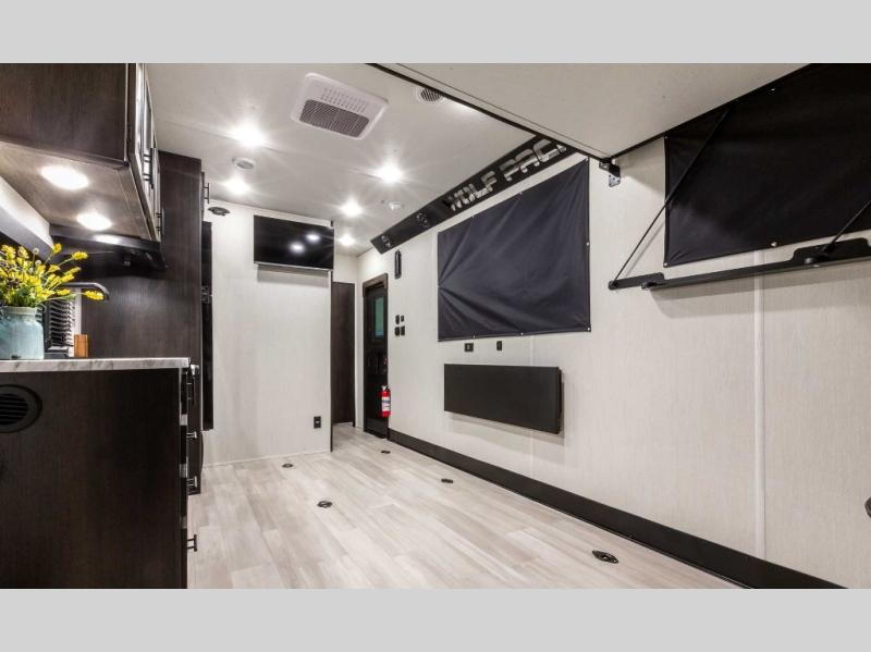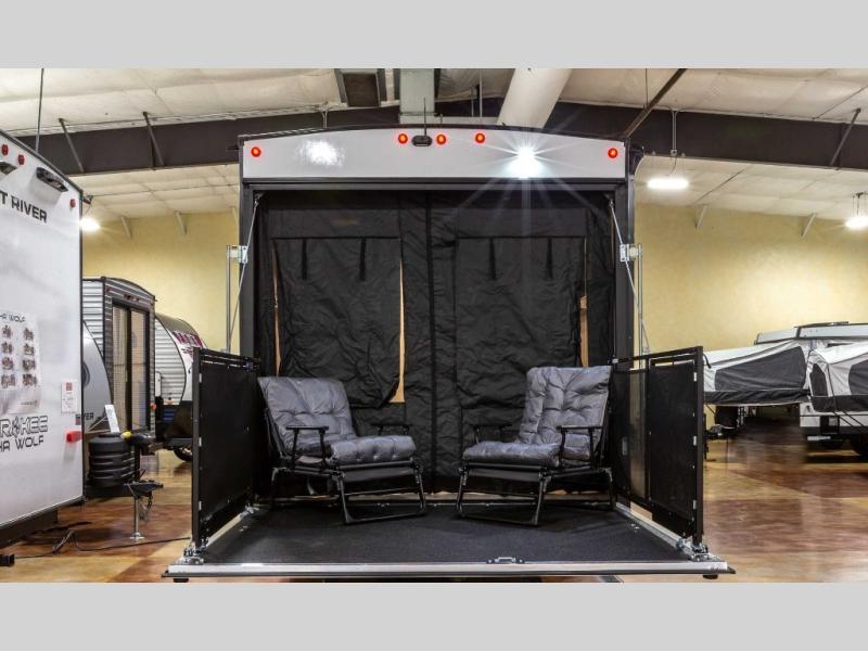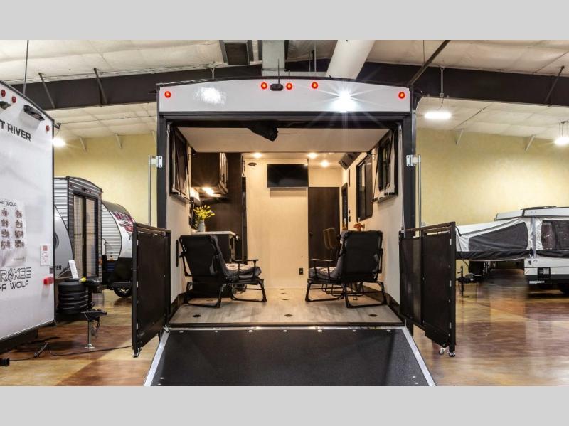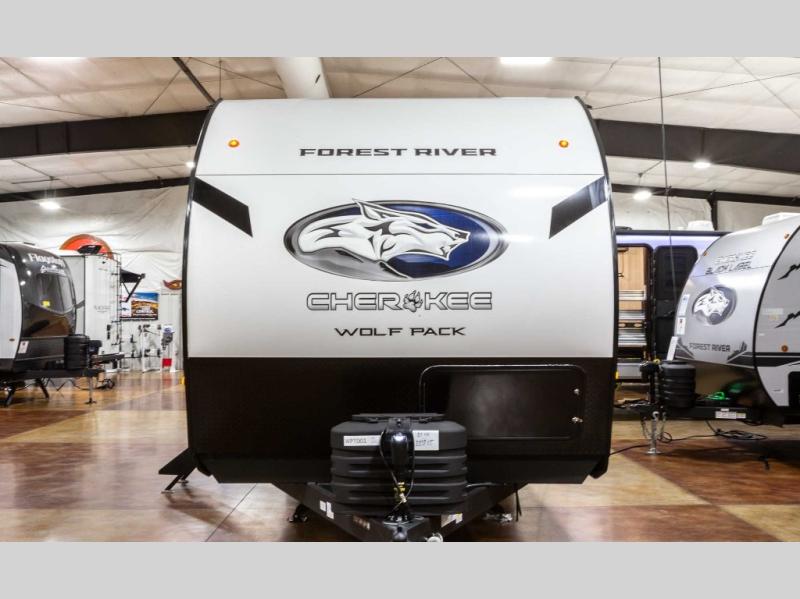 With any Cherokee Wolf Pack toy hauler by Forest River, you will enjoy never-ending adventures. You'll appreciate the 8' 6" wide body design so you can bring along toys and gear, and there is 4-camera prep with a rear camera if you want the option to make parking easier than ever. There is real wood cabinet doors and drawers inside and LED lights to keep your space well lit. These toy haulers are built with tongue and groove plywood main floors and a forced air heated underbelly and enclosed holding tanks that will help you extend your camping season.