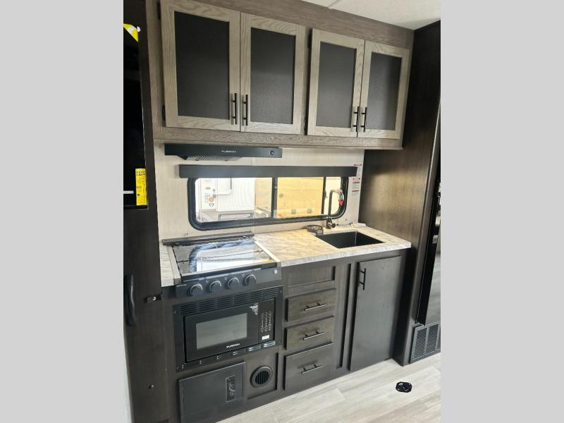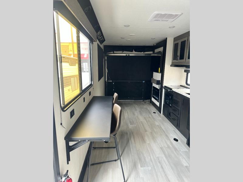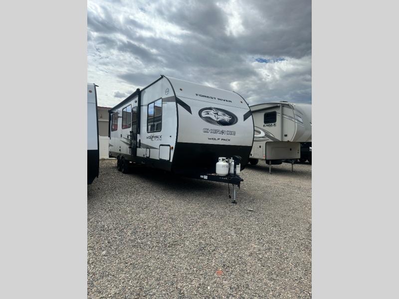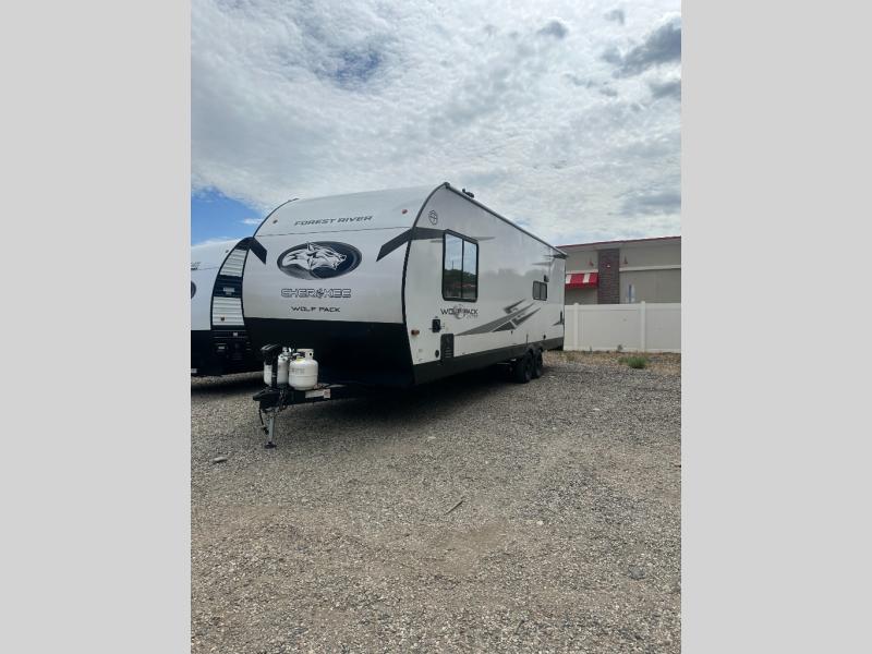 With any Cherokee Wolf Pack toy hauler by Forest River, you will enjoy never-ending adventures. You'll appreciate the 8' 6" wide body design so you can bring along toys and gear, and there is 4-camera prep with a rear camera if you want the option to make parking easier than ever. There is real wood cabinet doors and drawers inside and LED lights to keep your space well lit. These toy haulers are built with tongue and groove plywood main floors and a forced air heated underbelly and enclosed holding tanks that will help you extend your camping season.