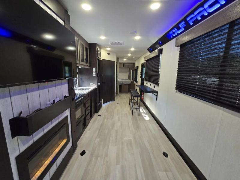 With any Cherokee Wolf Pack toy hauler by Forest River, you will enjoy never-ending adventures. You'll appreciate the 8' 6" wide body design so you can bring along toys and gear, and there is 4-camera prep with a rear camera if you want the option to make parking easier than ever. There is real wood cabinet doors and drawers inside and LED lights to keep your space well lit. These toy haulers are built with tongue and groove plywood main floors and a forced air heated underbelly and enclosed holding tanks that will help you extend your camping season.