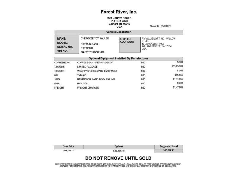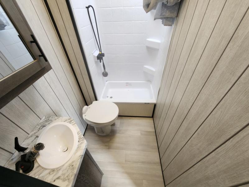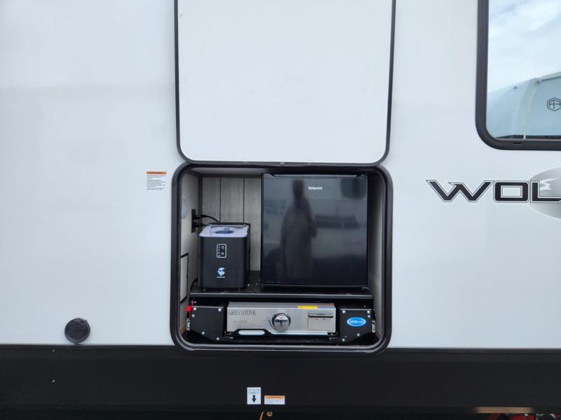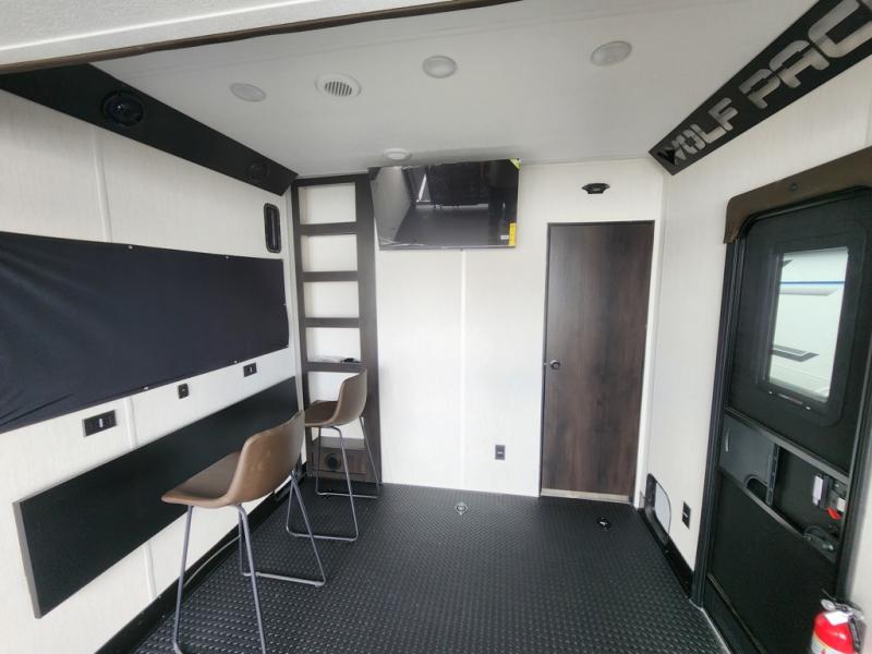 With any Cherokee Wolf Pack toy hauler by Forest River, you will enjoy never-ending adventures. You'll appreciate the 8' 6" wide body design so you can bring along toys and gear, and there is 4-camera prep with a rear camera if you want the option to make parking easier than ever. There is real wood cabinet doors and drawers inside and LED lights to keep your space well lit. These toy haulers are built with tongue and groove plywood main floors and a forced air heated underbelly and enclosed holding tanks that will help you extend your camping season.
