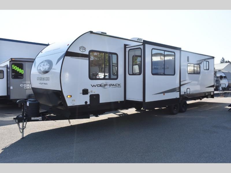 With any Cherokee Wolf Pack toy hauler by Forest River, you will enjoy never-ending adventures. You'll appreciate the 8' 6" wide body design so you can bring along toys and gear, and there is 4-camera prep with a rear camera if you want the option to make parking easier than ever. There is real wood cabinet doors and drawers inside and LED lights to keep your space well lit. These toy haulers are built with tongue and groove plywood main floors and a forced air heated underbelly and enclosed holding tanks that will help you extend your camping season.
