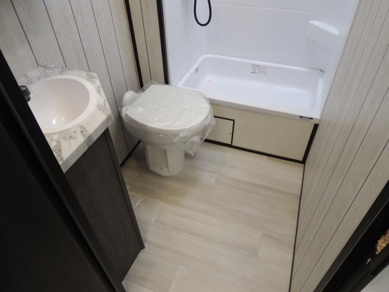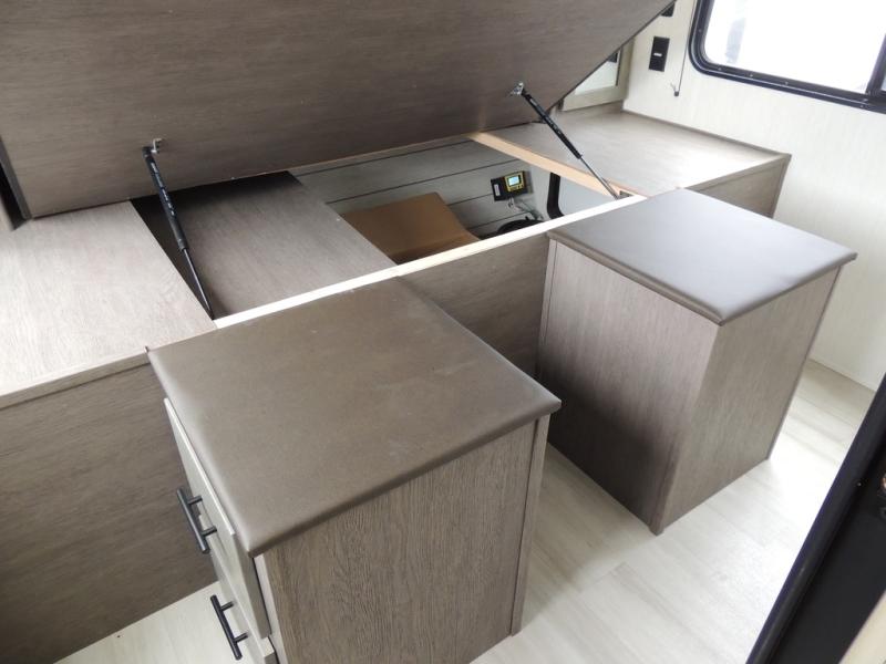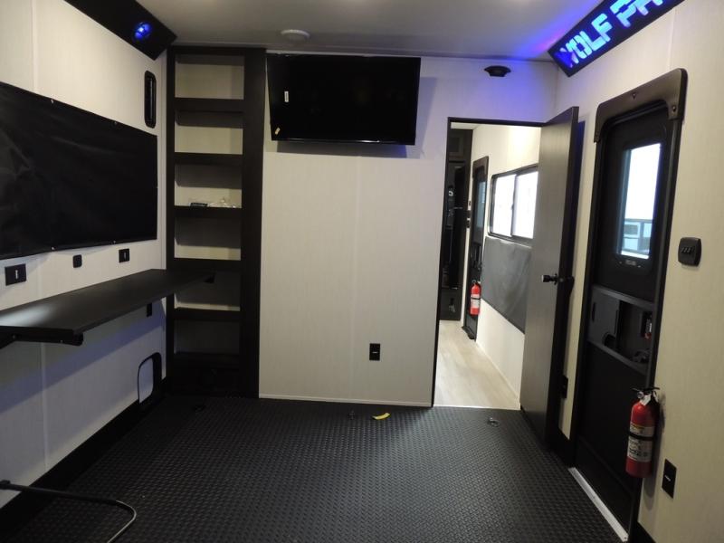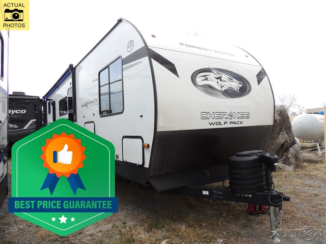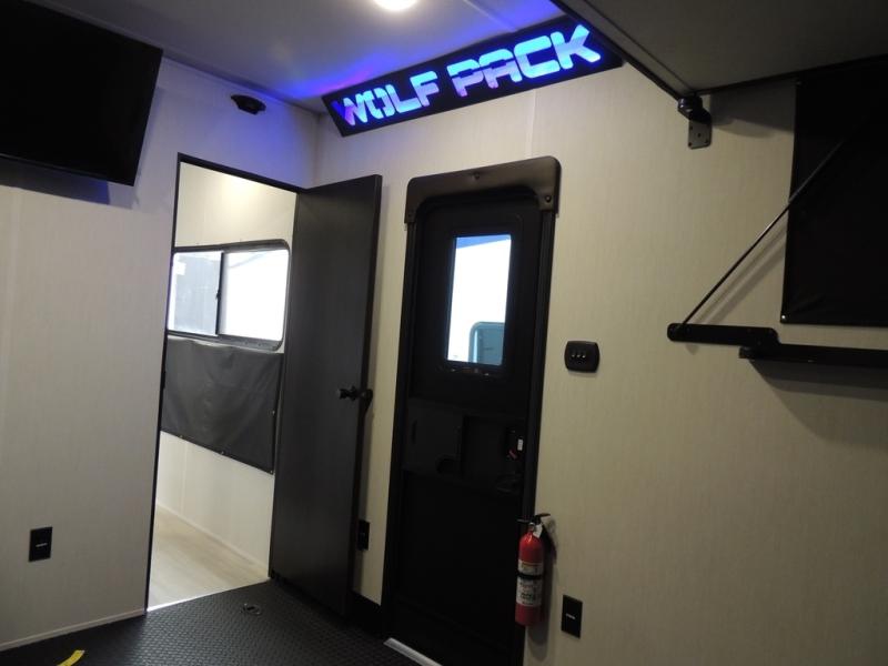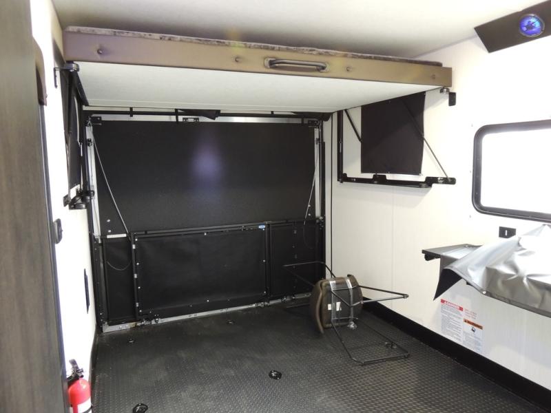 With any Cherokee Wolf Pack toy hauler by Forest River, you will enjoy never-ending adventures. You'll appreciate the 8' 6" wide body design so you can bring along toys and gear, and there is 4-camera prep with a rear camera if you want the option to make parking easier than ever. There is real wood cabinet doors and drawers inside and LED lights to keep your space well lit. These toy haulers are built with tongue and groove plywood main floors and a forced air heated underbelly and enclosed holding tanks that will help you extend your camping season.