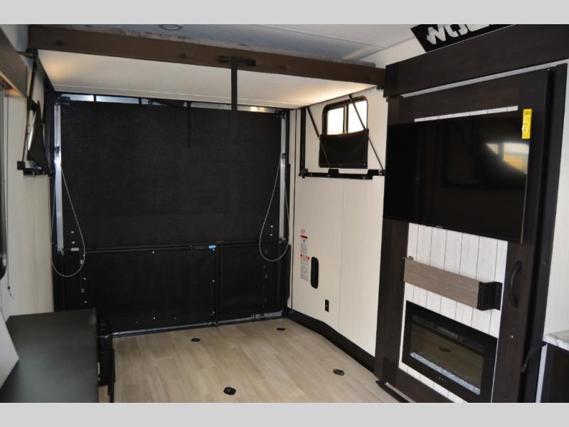 With any Cherokee Wolf Pack toy hauler by Forest River, you will enjoy never-ending adventures. You'll appreciate the 8' 6" wide body design so you can bring along toys and gear, and there is a high-output LED loading light for added convenience when you're getting back to camp late. There is real wood cabinet doors and drawers inside and LED lights to keep your space well lit. These toy haulers are built with tongue and groove plywood main floors and a forced air heated underbelly and enclosed holding tanks that will help you extend your camping season.