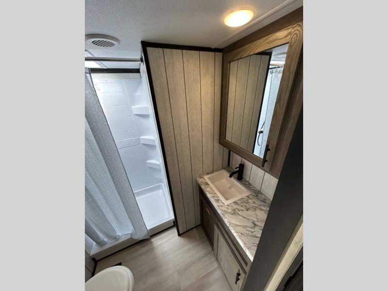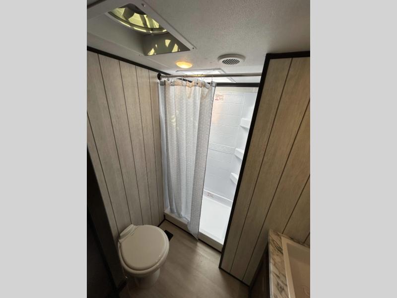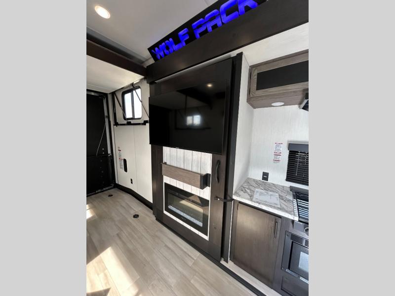 With any Cherokee Wolf Pack toy hauler by Forest River, you will enjoy never-ending adventures. You'll appreciate the 8' 6" wide body design so you can bring along toys and gear, and there is 4-camera prep with a rear camera if you want the option to make parking easier than ever. There is real wood cabinet doors and drawers inside and LED lights to keep your space well lit. These toy haulers are built with tongue and groove plywood main floors and a forced air heated underbelly and enclosed holding tanks that will help you extend your camping season.