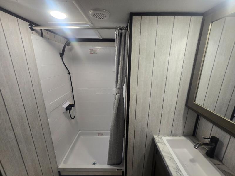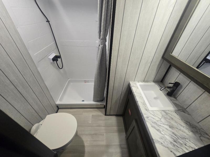 With any Cherokee Wolf Pack toy hauler by Forest River, you will enjoy never-ending adventures. You'll appreciate the 8' 6" wide body design so you can bring along toys and gear, and there is 4-camera prep with a rear camera if you want the option to make parking easier than ever. There are real wood cabinet doors and drawers inside and LED lights to keep your space well lit. These toy haulers are built with tongue and groove plywood main floors and a forced air heated underbelly and enclosed holding tanks that will help you extend your camping season.
