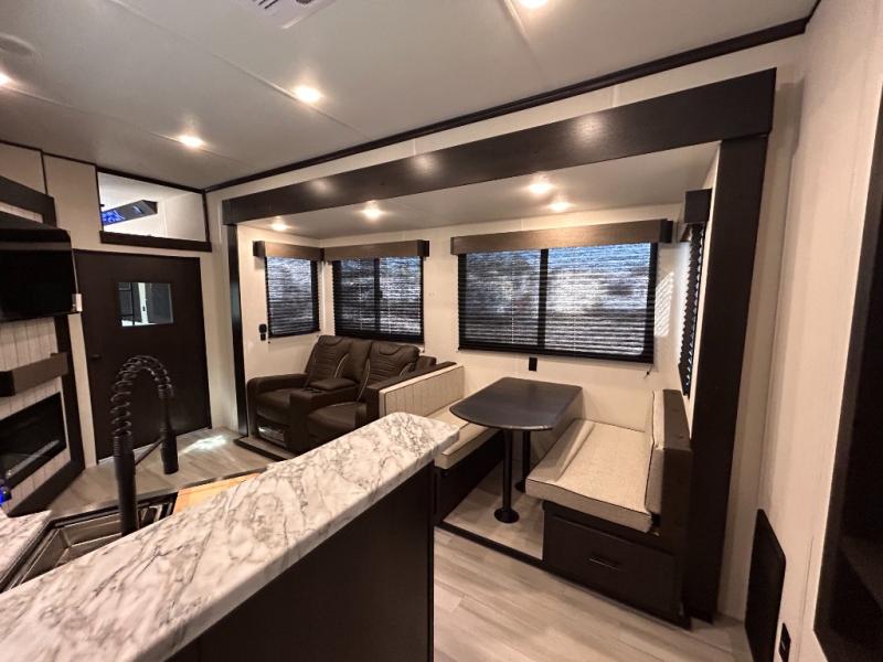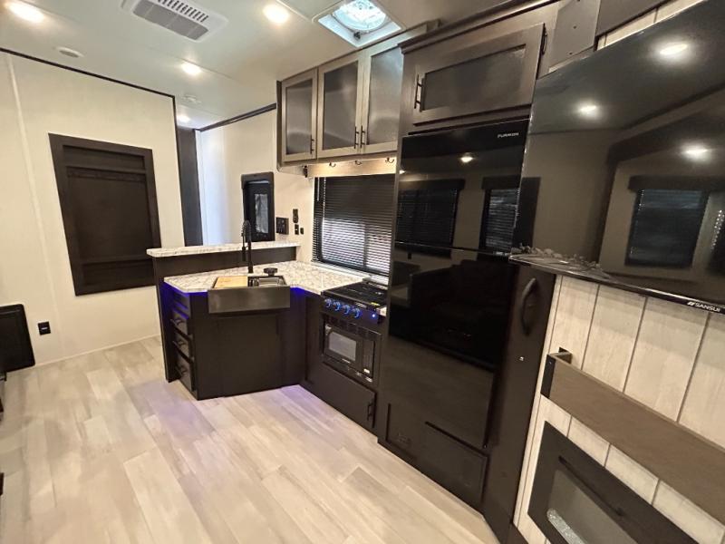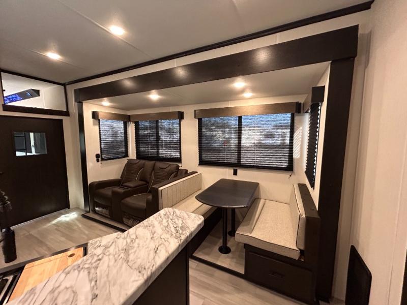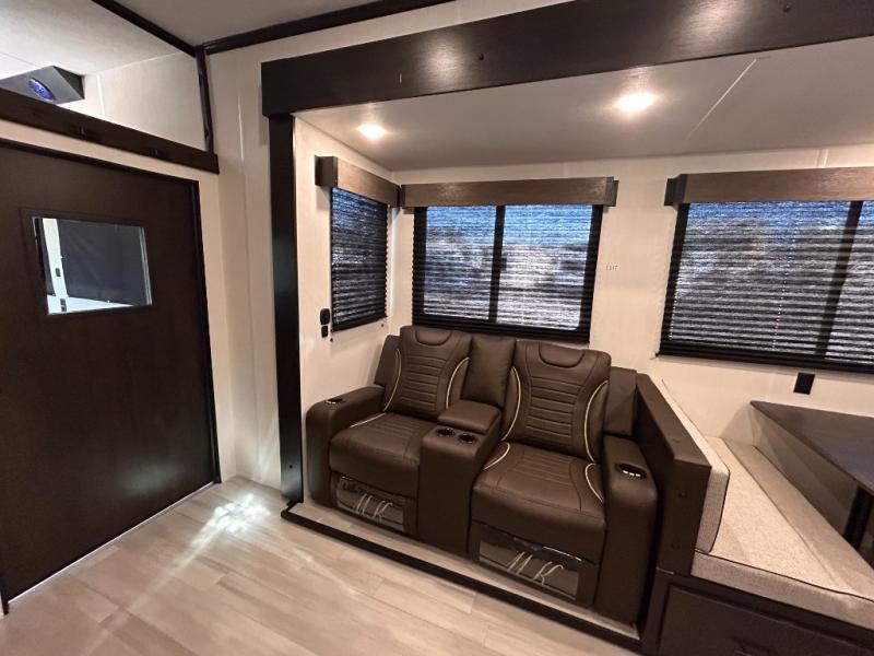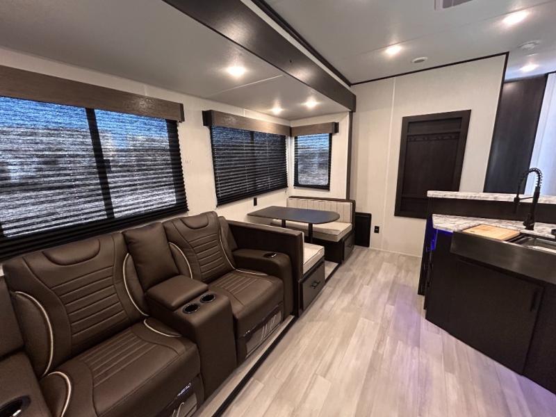 15FT GARAGE / 30 GALLON FUEL STATION / PATIO SYSTEM / KING BED / THEATER SEATING / OUTDOOR KITCHEN / TWO POWER AWNING / 200 W SOLAR / 2 AC !!