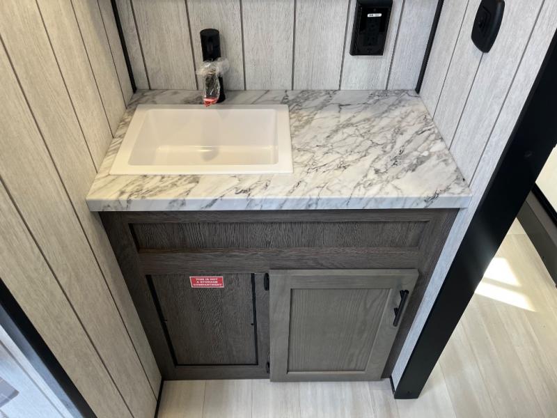 With any Cherokee Wolf Pack toy hauler by Forest River, you will enjoy never-ending adventures. You'll appreciate the 8' 6" wide body design so you can bring along toys and gear, and there is 4-camera prep with a rear camera if you want the option to make parking easier than ever. There is real wood cabinet doors and drawers inside and LED lights to keep your space well lit. These toy haulers are built with tongue and groove plywood main floors and a forced air heated underbelly and enclosed holding tanks that will help you extend your camping season.