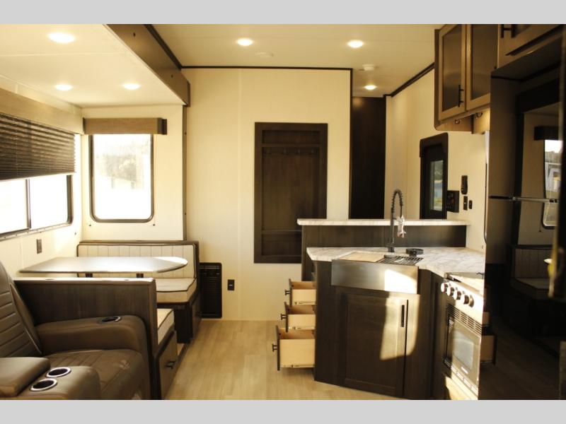 With any Cherokee Wolf Pack toy hauler by Forest River, you will enjoy never-ending adventures. You'll appreciate the 8' 6" wide body design so you can bring along toys and gear, and there is 4-camera prep with a rear camera if you want the option to make parking easier than ever. There is real wood cabinet doors and drawers inside and LED lights to keep your space well lit. These toy haulers are built with tongue and groove plywood main floors and a forced air heated underbelly and enclosed holding tanks that will help you extend your camping season.