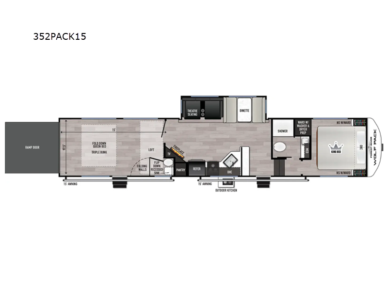 Forest River Cherokee Wolf Pack toy hauler 352PACK15 highlights: