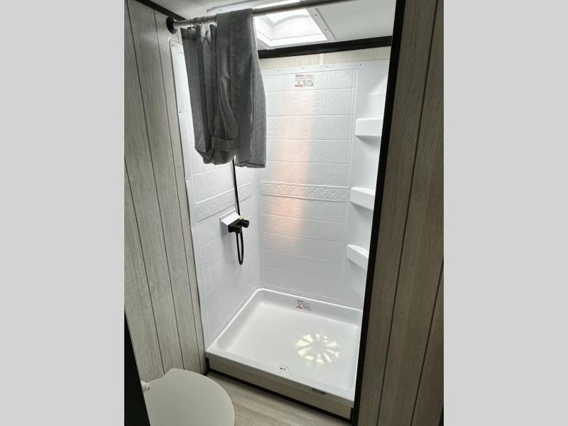 With any Cherokee Wolf Pack toy hauler by Forest River, you will enjoy never-ending adventures. You'll appreciate the 8' 6" wide body design so you can bring along toys and gear, and there is a high-output LED loading light for added convenience when you're getting back to camp late. There is real wood cabinet doors and drawers inside and LED lights to keep your space well lit. These toy haulers are built with tongue and groove plywood main floors and a forced air heated underbelly and enclosed holding tanks that will help you extend your camping season.