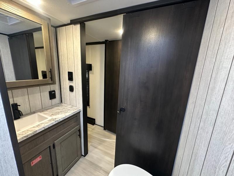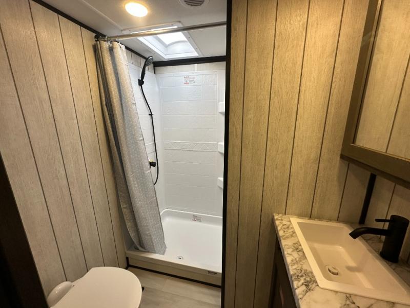 With any Cherokee Wolf Pack toy hauler by Forest River, you will enjoy never-ending adventures. You'll appreciate the 8' 6" wide body design so you can bring along toys and gear, and there is 4-camera prep with a rear camera if you want the option to make parking easier than ever. There is real wood cabinet doors and drawers inside and LED lights to keep your space well lit. These toy haulers are built with tongue and groove plywood main floors and a forced air heated underbelly and enclosed holding tanks that will help you extend your camping season.