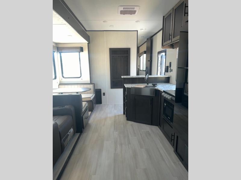 With any Cherokee Wolf Pack toy hauler by Forest River, you will enjoy never-ending adventures. You'll appreciate the 8' 6" wide body design so you can bring along toys and gear, and there is 4-camera prep with a rear camera if you want the option to make parking easier than ever. There are real wood cabinet doors and drawers inside and LED lights to keep your space well lit. These toy haulers are built with tongue and groove plywood main floors and a forced air heated underbelly and enclosed holding tanks that will help you extend your camping season.