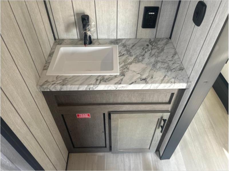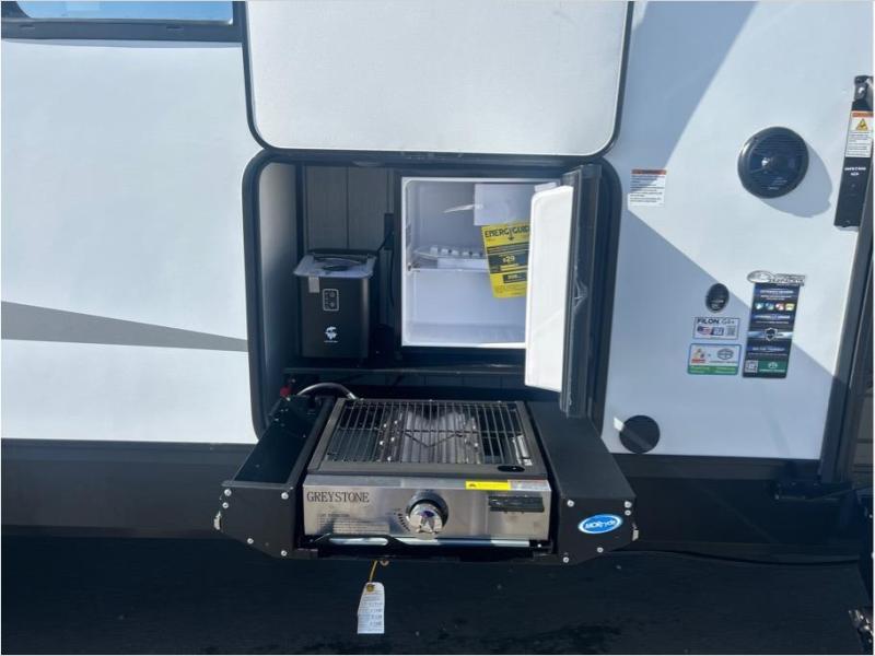 With any Cherokee Wolf Pack toy hauler by Forest River, you will enjoy never-ending adventures. You'll appreciate the 8' 6" wide body design so you can bring along toys and gear, and there is 4-camera prep with a rear camera if you want the option to make parking easier than ever. There are real wood cabinet doors and drawers inside and LED lights to keep your space well lit. These toy haulers are built with tongue and groove plywood main floors and a forced air heated underbelly and enclosed holding tanks that will help you extend your camping season.