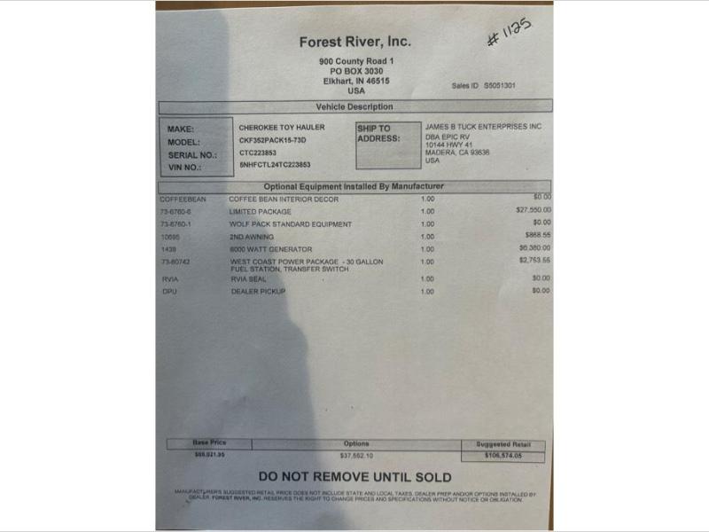 Forest River Cherokee Wolf Pack toy hauler 352PACK15 highlights: