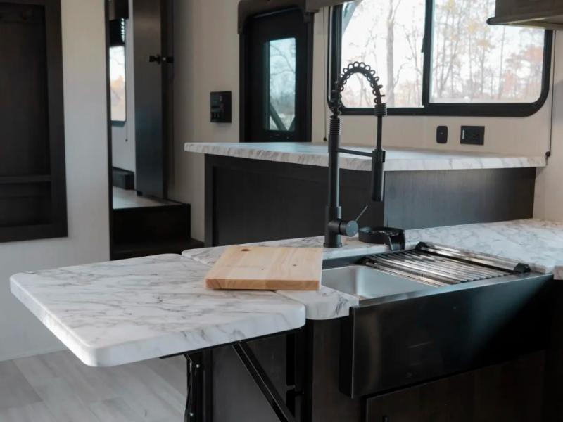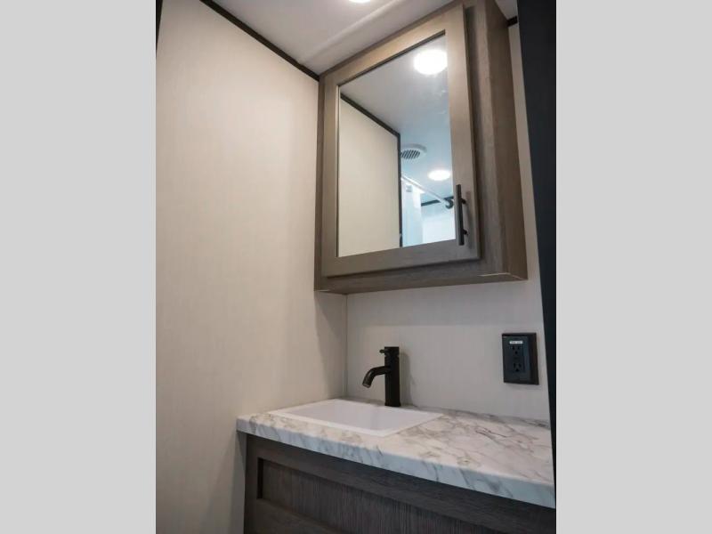 With any Cherokee Wolf Pack toy hauler by Forest River, you will enjoy never-ending adventures. You'll appreciate the 8' 6" wide body design so you can bring along toys and gear, and there is 4-camera prep with a rear camera if you want the option to make parking easier than ever. There is real wood cabinet doors and drawers inside and LED lights to keep your space well lit. These toy haulers are built with tongue and groove plywood main floors and a forced air heated underbelly and enclosed holding tanks that will help you extend your camping season.
