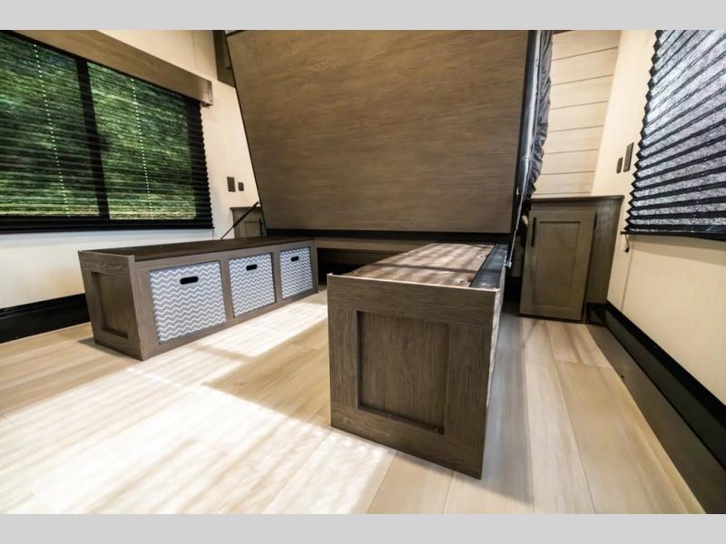 With any Cherokee Wolf Pack toy hauler by Forest River, you will enjoy never-ending adventures. You'll appreciate the 8' 6" wide body design so you can bring along toys and gear, and there is 4-camera prep with a rear camera if you want the option to make parking easier than ever. There is real wood cabinet doors and drawers inside and LED lights to keep your space well lit. These toy haulers are built with tongue and groove plywood main floors and a forced air heated underbelly and enclosed holding tanks that will help you extend your camping season.