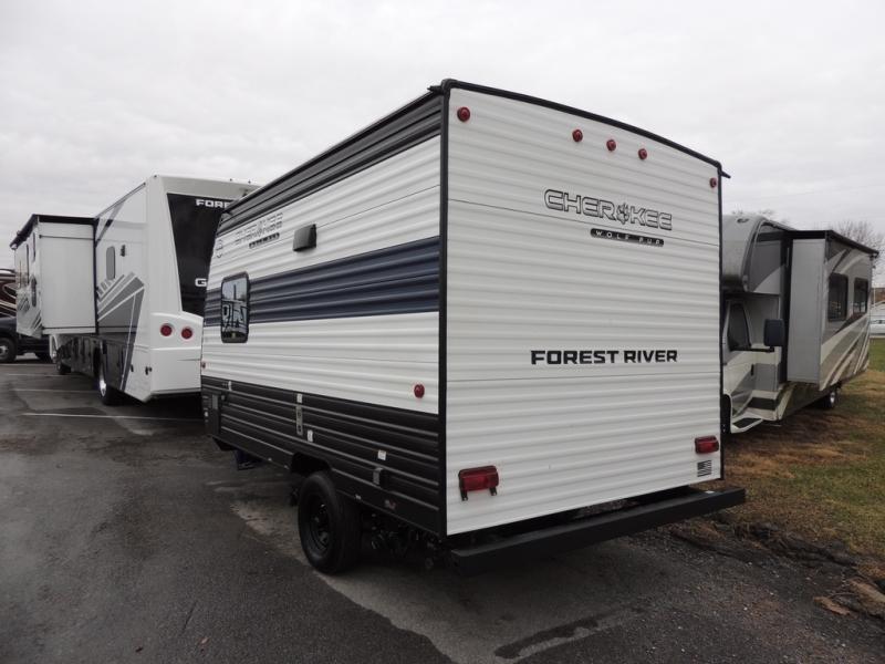 Each one of these Forest River Cherokee Wolf Pup travel trailers and toy hauler are lightweight and easy to tow! They are fully self-contained with ample tank capacities, an abundance of storage space, and filled with at home amenities. The full bath and kitchen amenities will make life at the campground easier than ever, and the outdoor patio awning will provide an inviting outdoor space!