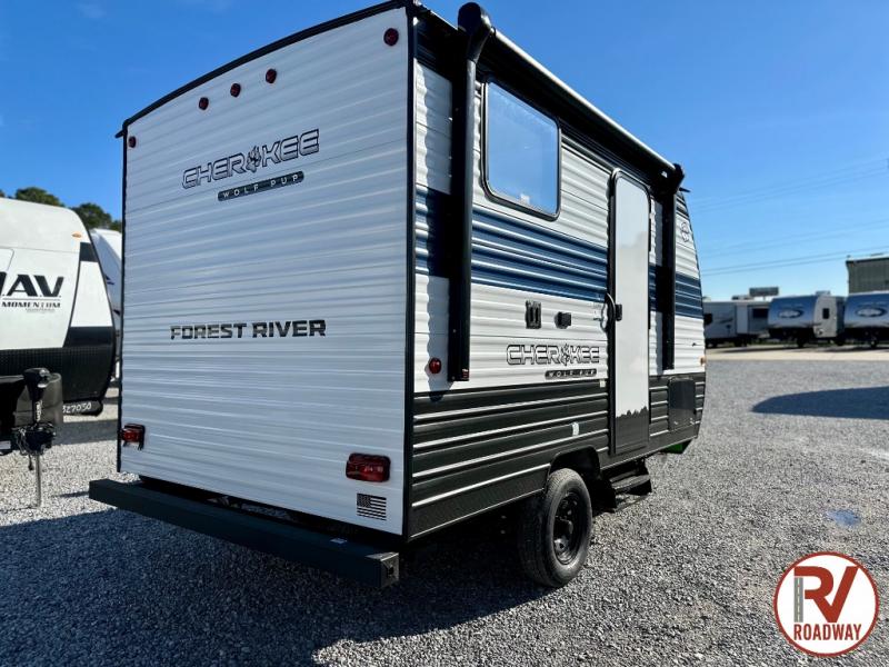 Each one of these Forest River Cherokee Wolf Pup travel trailers and toy hauler are lightweight and easy to tow! They are fully self-contained with ample tank capacities, an abundance of storage space, and filled with at home amenities. The full bath and kitchen amenities will make life at the campground easier than ever, and the outdoor patio awning will provide an inviting outdoor space!