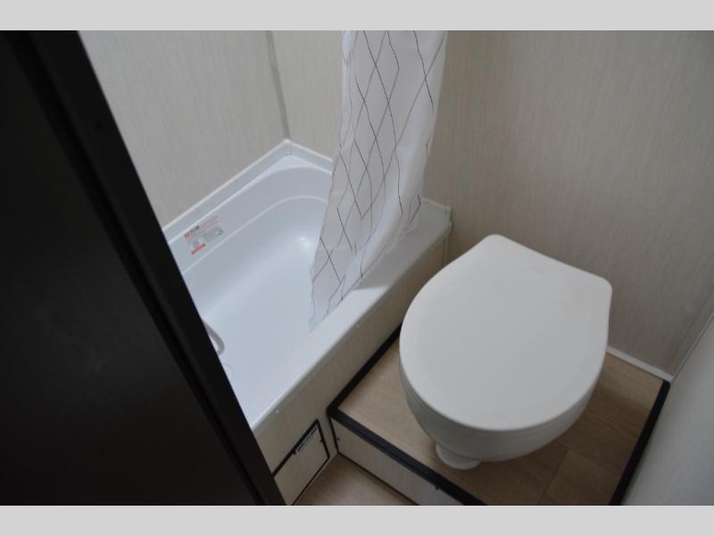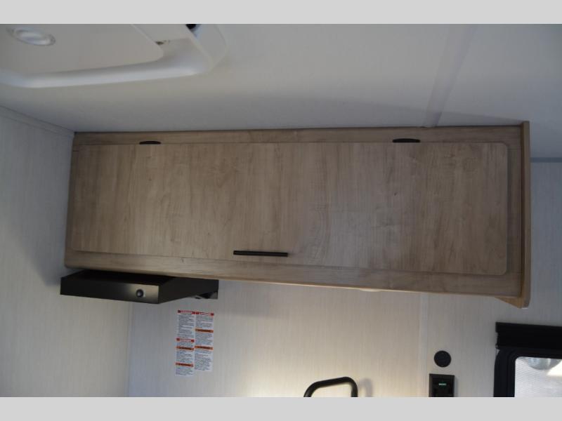 This travel trailer is perfect for epic road trips, memorable camping excursions, or rejuvenating getaways. The private bathroom is equipped with everything you need for a comfortable stay, providing a convenient spot to freshen up after a long day of exploring. The kitchen is equipped with a refrigerator for keeping drinks and ingredients fresh, and a microwave for quick reheating. The bunk beds are a great spot to take a nap or a kid's sleeping space. Overhead cabinets provide additional storage for cookware, dishes, and other essentials. In addition, the queen-sized bed provides a comfortable sleeping space, perfect for relaxing after a long day.