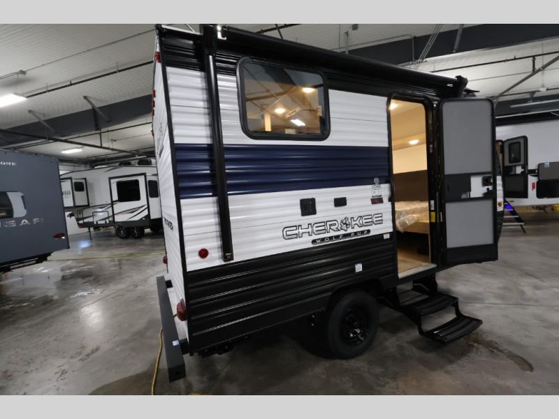 Each one of these Forest River Cherokee Wolf Pup travel trailers and toy hauler are lightweight and easy to tow! They are fully self-contained with ample tank capacities, an abundance of storage space, and filled with at home amenities. The full bath and kitchen amenities will make life at the campground easier than ever, and the outdoor patio awning will provide an inviting outdoor space!