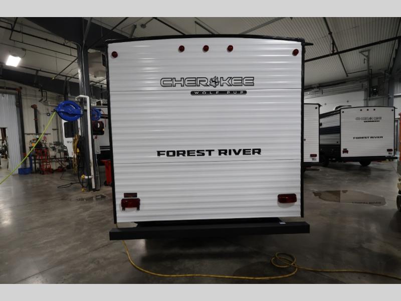 Each one of these Forest River Cherokee Wolf Pup travel trailers and toy hauler are lightweight and easy to tow! They are fully self-contained with ample tank capacities, an abundance of storage space, and filled with at home amenities. The full bath and kitchen amenities will make life at the campground easier than ever, and the outdoor patio awning will provide an inviting outdoor space!