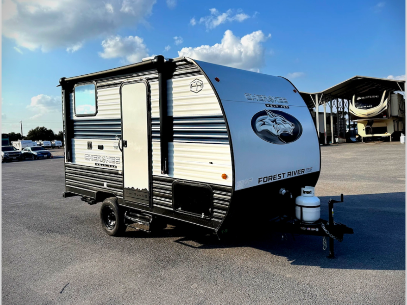 Each one of these Forest River Cherokee Wolf Pup travel trailers and toy hauler are lightweight and easy to tow! They are fully self-contained with ample tank capacities, an abundance of storage space, and filled with at home amenities. The full bath and kitchen amenities will make life at the campground easier than ever, and the outdoor patio awning will provide an inviting outdoor space!