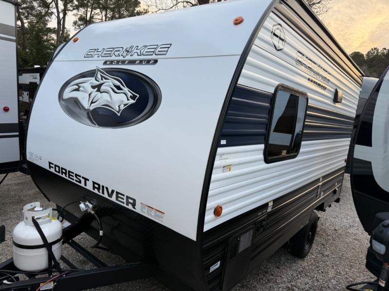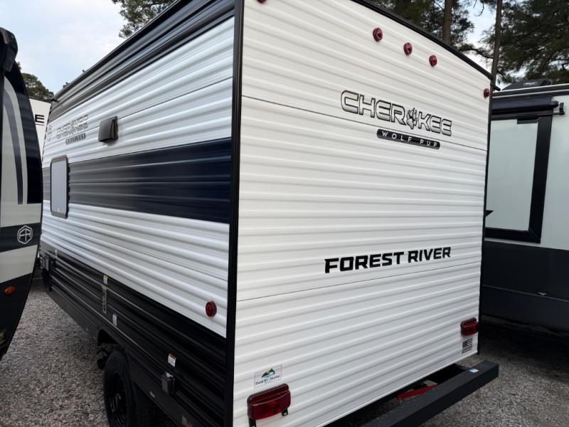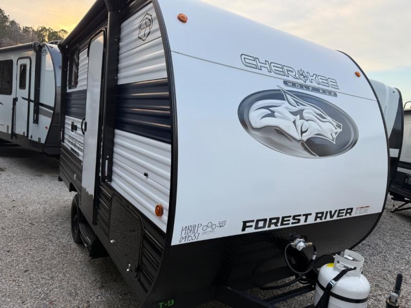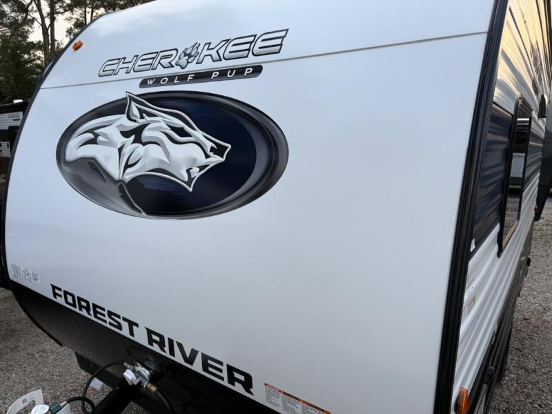 Each one of these Forest River Cherokee Wolf Pup travel trailers and toy hauler are lightweight and easy to tow! They are fully self-contained with ample tank capacities, an abundance of storage space, and filled with at home amenities. The full bath and kitchen amenities will make life at the campground easier than ever, and the outdoor patio awning will provide an inviting outdoor space!