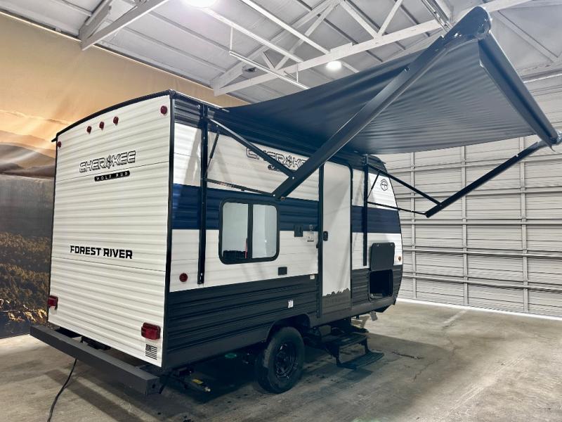 Each one of these Forest River Cherokee Wolf Pup travel trailers and toy hauler are lightweight and easy to tow! They are fully self-contained with ample tank capacities, an abundance of storage space, and filled with at home amenities. The full bath and kitchen amenities will make life at the campground easier than ever, and the outdoor patio awning will provide an inviting outdoor space!