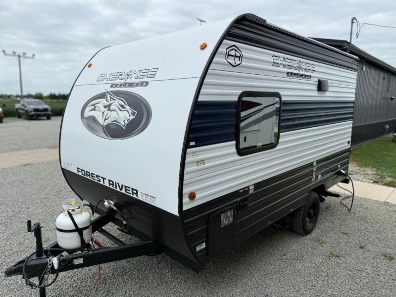 Each one of these Forest River Cherokee Wolf Pup travel trailers and toy hauler are lightweight and easy to tow! They are fully self-contained with ample tank capacities, an abundance of storage space, and filled with at home amenities. The full bath and kitchen amenities will make life at the campground easier than ever, and the outdoor patio awning will provide an inviting outdoor space!