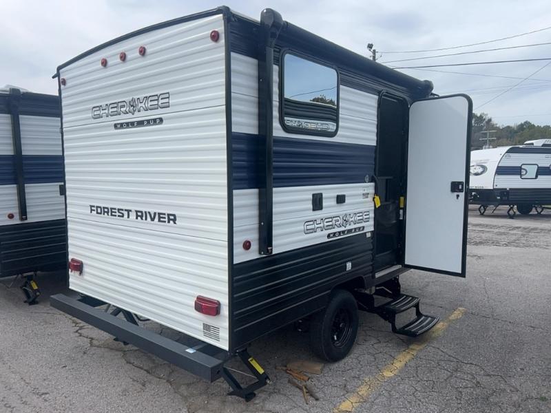 Each one of these Forest River Cherokee Wolf Pup travel trailers and toy hauler are lightweight and easy to tow! They are fully self-contained with ample tank capacities, an abundance of storage space, and filled with at home amenities. The full bath and kitchen amenities will make life at the campground easier than ever, and the outdoor patio awning will provide an inviting outdoor space!