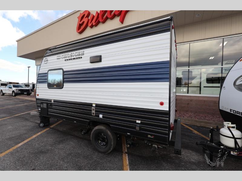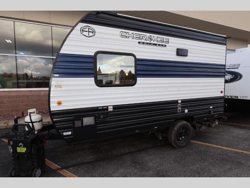 Each one of these Forest River Cherokee Wolf Pup travel trailers and toy hauler are lightweight and easy to tow! They are fully self-contained with ample tank capacities, an abundance of storage space, and filled with at home amenities. The full bath and kitchen amenities will make life at the campground easier than ever, and the outdoor patio awning will provide an inviting outdoor space!