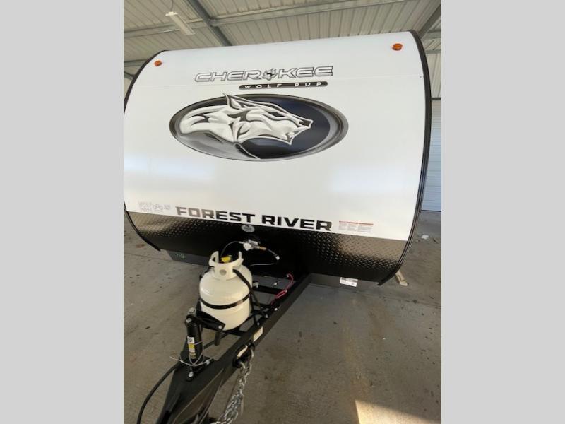 Each one of these Forest River Cherokee Wolf Pup travel trailers and toy hauler are lightweight and easy to tow! They are fully self-contained with ample tank capacities, an abundance of storage space, and filled with at home amenities. The full bath and kitchen amenities will make life at the campground easier than ever, and the outdoor patio awning will provide an inviting outdoor space!