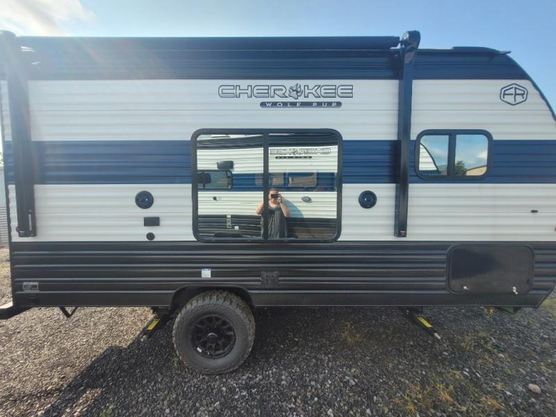 Each one of these Forest River Cherokee Wolf Pup travel trailers are lightweight and easy to tow! They are fully self contained with ample tank capacities, an abundance of storage space, and filled with at home amenities. The aerodynamic smooth radius front profile, the Power Gear frame technology, and the space saver rail design make them easier to maneuver. You will also appreciate the seamless roofing membrane with heat reflectivity to keep the sun from making your unit a hot box. The tongue and groove plywood flooring will hold up for years of fun and the USB charging stations help to keep your electronics at 100% while you're away. Come find the best model for you today!