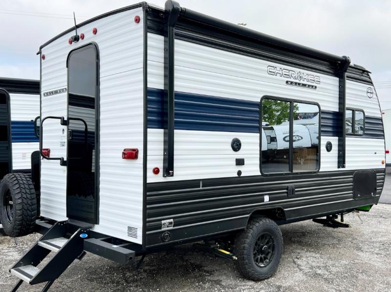 Each one of these Forest River Cherokee Wolf Pup travel trailers are lightweight and easy to tow! They are fully self contained with ample tank capacities, an abundance of storage space, and filled with at home amenities. The aerodynamic smooth radius front profile, the Power Gear frame technology, and the space saver rail design make them easier to maneuver. You will also appreciate the seamless roofing membrane with heat reflectivity to keep the sun from making your unit a hot box. The tongue and groove plywood flooring will hold up for years of fun and the USB charging stations help to keep your electronics at 100% while you're away. Come find the best model for you today!