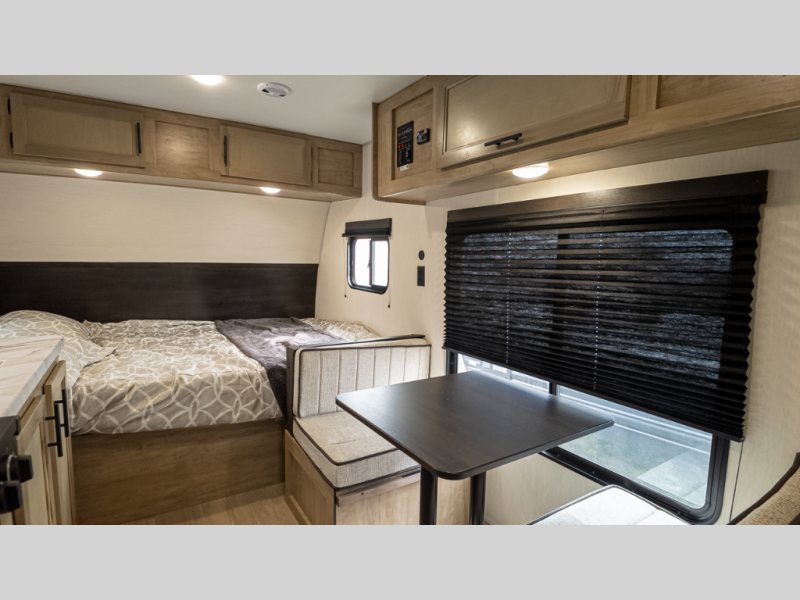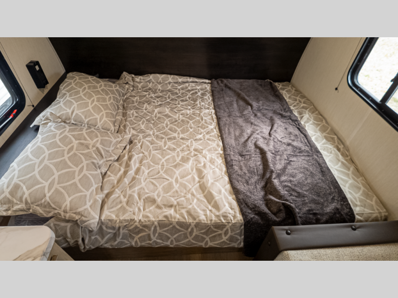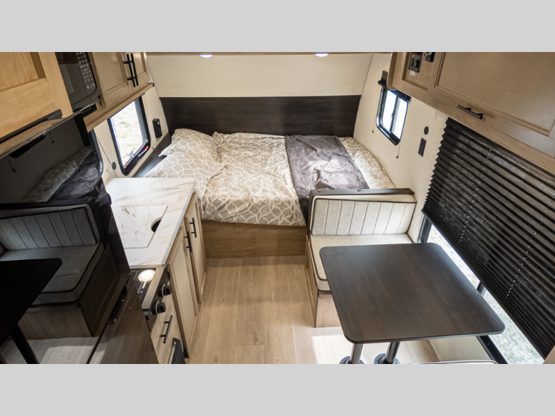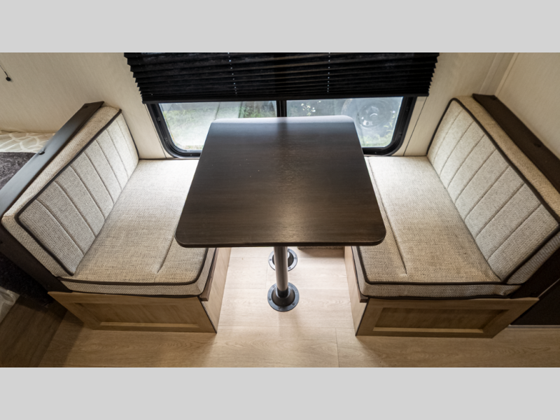 - Sleep & Layout: Queen bed, booth dinette; no slide