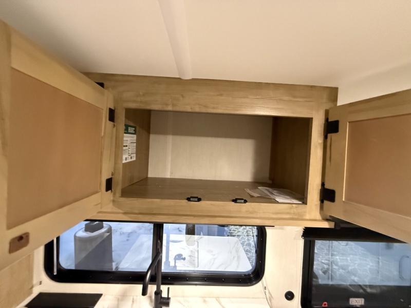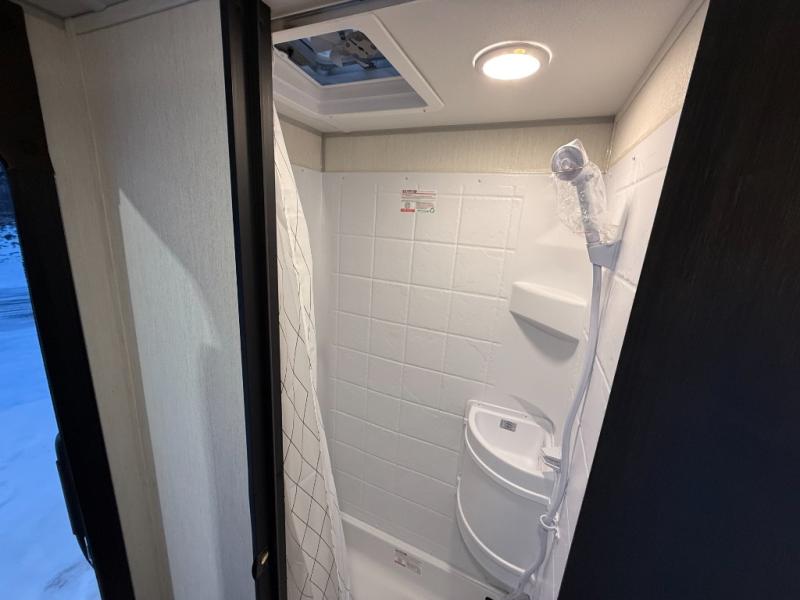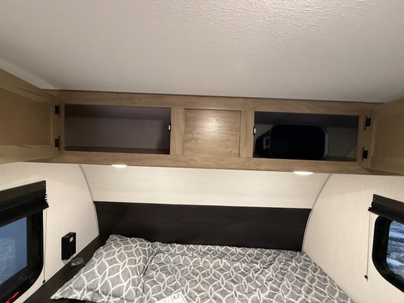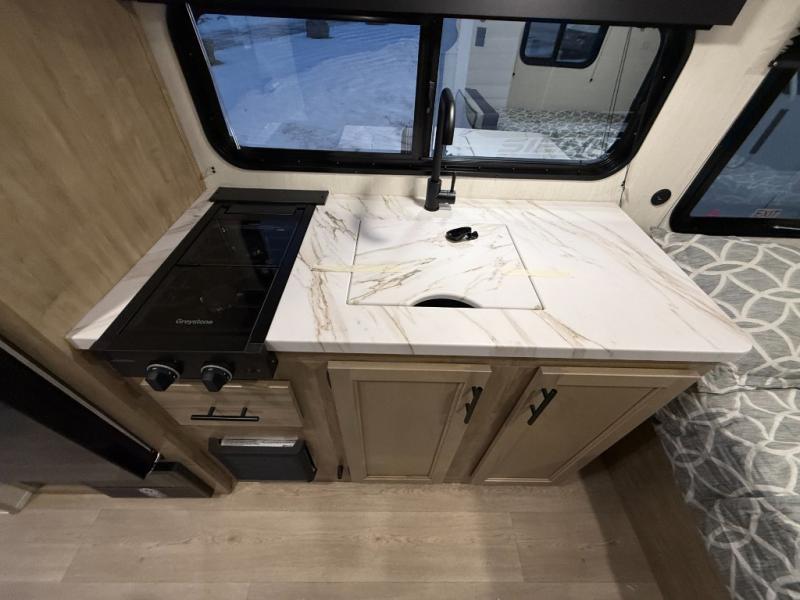 There are lots of features packed into this 19' travel trailer! The rear entry design creates a split bathroom for one person to use the private toilet while another freshens up in the private shower. You can prepare your best home cooked meals with the high output cooktop, the refrigerator, and a sink to make clean up easier, plus you can comfortably enjoy your meals at the booth dinette with a TV mount location. The front queen bed provides a comfortable place to lay your head at night. Store your outdoor gear in the outside storage area and watch the big game outdoors with the outside TV mount if you added a TV!