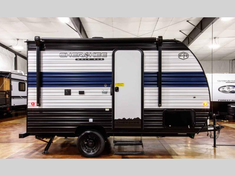 Each one of these Forest River Cherokee Wolf Pup travel trailers and toy hauler are lightweight and easy to tow! They are fully self-contained with ample tank capacities, an abundance of storage space, and filled with at home amenities. The full bath and kitchen amenities will make life at the campground easier than ever, and the outdoor patio awning will provide an inviting outdoor space!