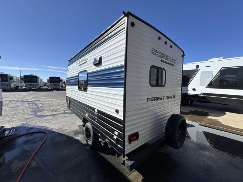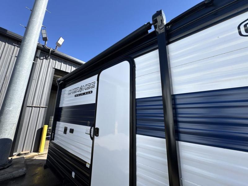 Each one of these Forest River Cherokee Wolf Pup travel trailers and toy hauler are lightweight and easy to tow! They are fully self-contained with ample tank capacities, an abundance of storage space, and filled with at home amenities. The full bath and kitchen amenities will make life at the campground easier than ever, and the outdoor patio awning will provide an inviting outdoor space!