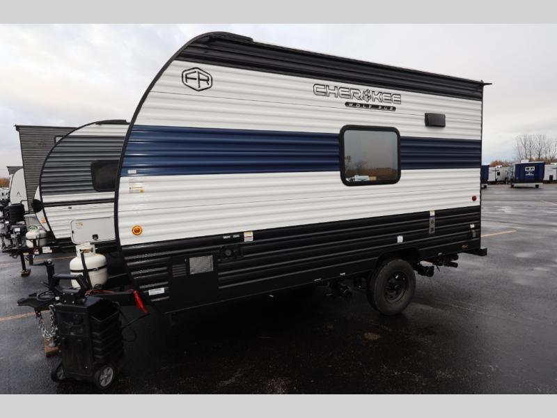Each one of these Forest River Cherokee Wolf Pup travel trailers and toy hauler are lightweight and easy to tow! They are fully self-contained with ample tank capacities, an abundance of storage space, and filled with at home amenities. The full bath and kitchen amenities will make life at the campground easier than ever, and the outdoor patio awning will provide an inviting outdoor space!