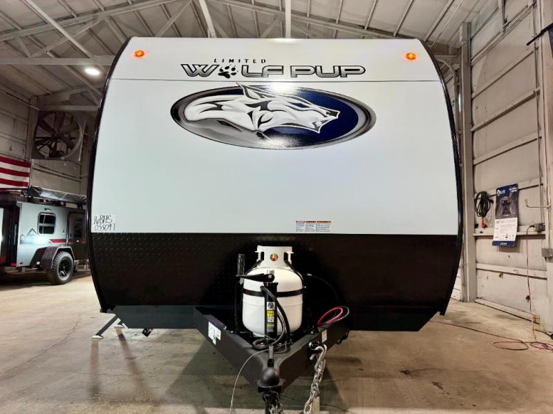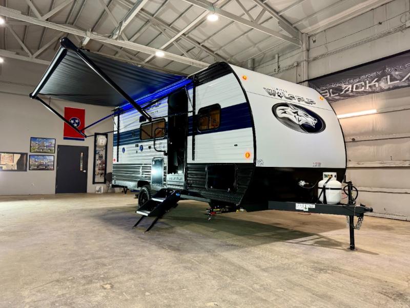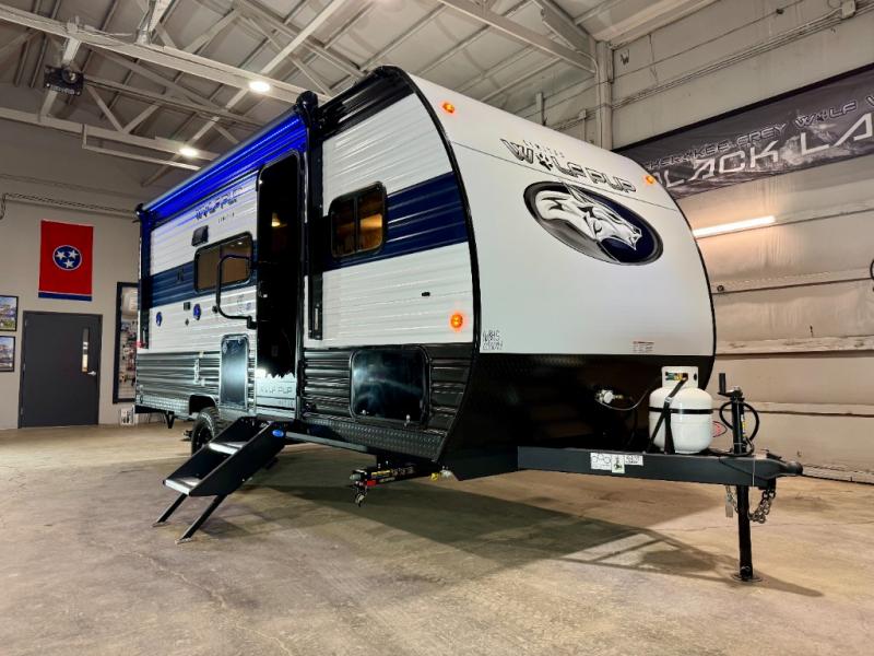 Each one of these Forest River Cherokee Wolf Pup travel trailers are lightweight and easy to tow! They are fully self contained with ample tank capacities, an abundance of storage space, and filled with at home amenities. The aerodynamic smooth radius front profile, the Power Gear frame technology, and the space saver rail design make them easier to maneuver. You will also appreciate the seamless roofing membrane with heat reflectivity to keep the sun from making your unit a hot box. The tongue and groove plywood flooring will hold up for years of fun and the USB charging stations help to keep your electronics at 100% while you're away. Come find the best model for you today!