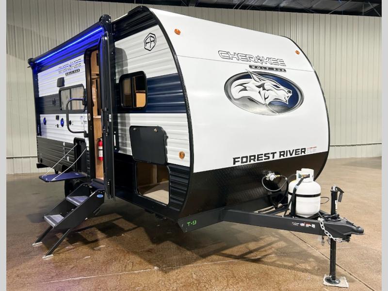 Each one of these Forest River Cherokee Wolf Pup travel trailers are lightweight and easy to tow! They are fully self contained with ample tank capacities, an abundance of storage space, and filled with at home amenities. The aerodynamic smooth radius front profile, the Power Gear frame technology, and the space saver rail design make them easier to maneuver. You will also appreciate the seamless roofing membrane with heat reflectivity to keep the sun from making your unit a hot box. The tongue and groove plywood flooring will hold up for years of fun and the USB charging stations help to keep your electronics at 100% while you're away. Come find the best model for you today!